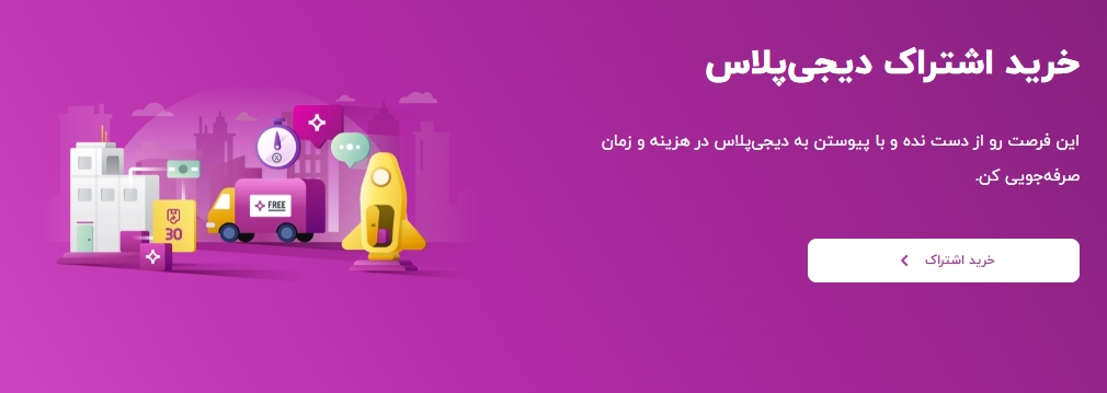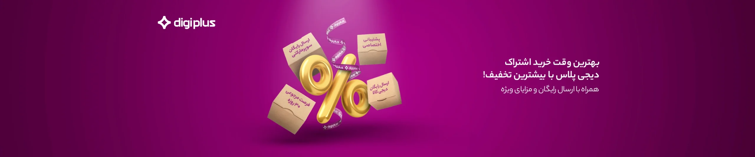 دیجی شاپ پلاس توی این تخفیف تکرارنشدنی، وقتشه دیجیپلاسی بشی! فقط با ۲۰۰ هزارتومان اشتراک ۳ ماهه بخر و ۱۲ ارسال رایگان و ۶ ارسال رایگان سوپر مارکت بگیر!فقط با ۳۸۰ هزارتومان اشتراک ۶ ماهه بخر و ۲۴ ارسال رایگان و ۱۲ ارسال رایگان سوپر مارکت بگیر!